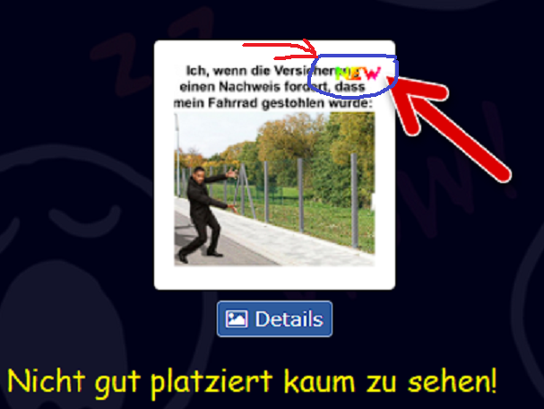 2. Wenn du dann eh schon dabei sein solltest, kannst du bitte mal das Gif-Bild wenn ein neues Bild hochgeladen wurde an die Stelle platzieren, wo bis jetzt der Button Details ist? Siehe Bild: