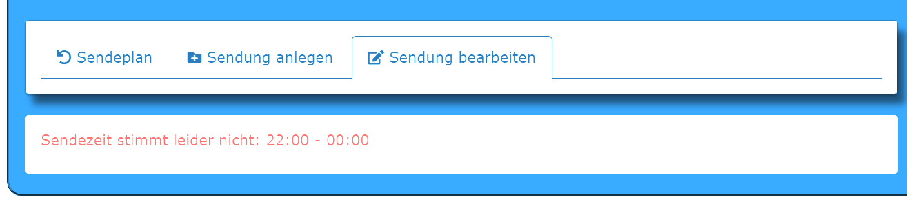 Wenn wir das auf 0 Uhr setzen bei einer Sendung von 22 Uhr bis 0 Uhr gab es immer eine Fehlermeldung. Daher setzen wir das bis 24 Uhr. Oder wenn die Sendung bis 1 Uhr geht auf 24:59 Uhr. Da es nicht Datum übergreifend geht. Da währe es schon besser wenn man es direkt auf 1:00 Uhr setzen könnte. Wir nutzen die Minuten, währe doof wenn die weg fallen würden. Da wir eine Sendung haben die bis 20:03 geht und auch einige die 20, 30 oder 40 /45 Minuten nutzen.