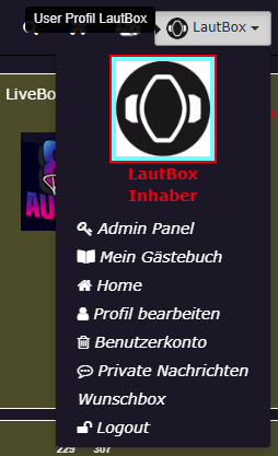 Nur wenn sie sich einlogt auf der Webseite.Steht bei ihr Profil bearbeiten Grussbox Logout.